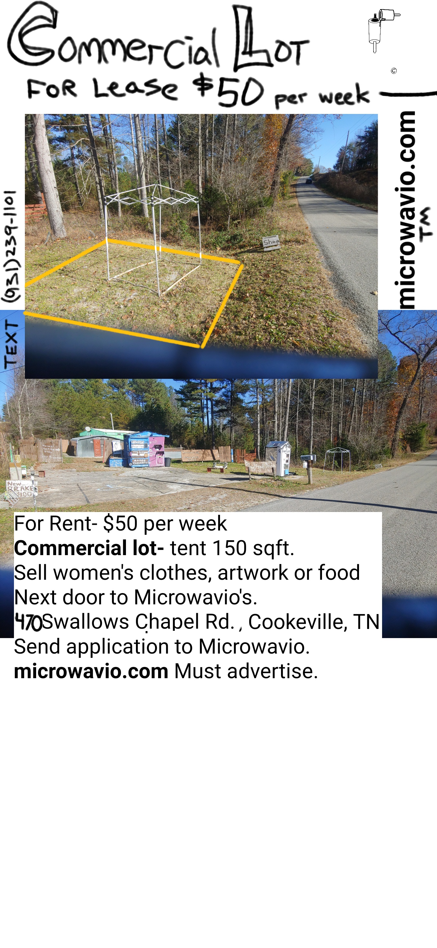 Commercial Lot Rent $50 (per week. Sell women's clothes, artwork or food) -outdoor tent table
